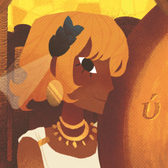 Glittering sands surround Chryseum, the dominion of The Gilded, Lady Fortunia.Vastly uninhabited due to the harsh living conditions of the desert, the people of Chryseum live in cities built around the most notable source of water in the region, this being the Eye of Pontus oasis, the foundation of the capital, Via Aurea.The Chryseans have built artificial canals that connect the different urban zones, which facilitates commerce. Furthermore, this allows direct access to the city of Nereus, which is home to Port Nereus, the biggest and most important harbour in the continent, thus it became the hub of commerce of the continent.In consequence, it is the commercial elite of Chryseum who are in charge of governmental affairs, and the population consists of mostly traders and merchants. Lady Fortunia doesn't intervene with politics, she simply lounges in her abode at Chryse.Due to Fortunia's association with luck, games of chance are very popular, and the national holiday, Tychetropos, is a festival where people gamble, as it's believed their good fortune is enhanced for that day.